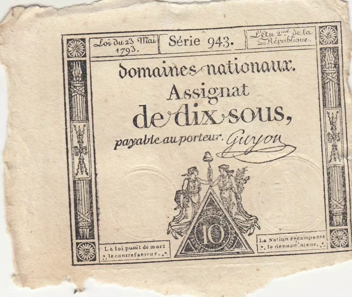 Billet France 10 Sous - Femmes - bonnet frigien - 23-05-1793 - Sign. Guyon - Série 943