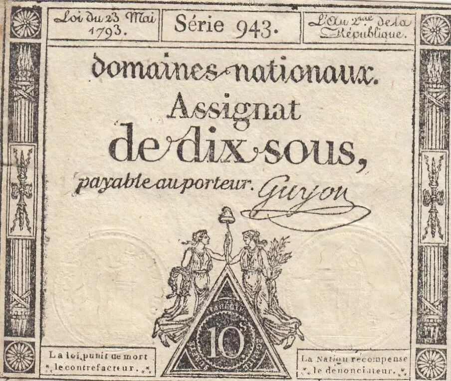 Billet France 10 Sous - Femmes - bonnet frigien - 23-05-1793 - Sign. Guyon - Série 943