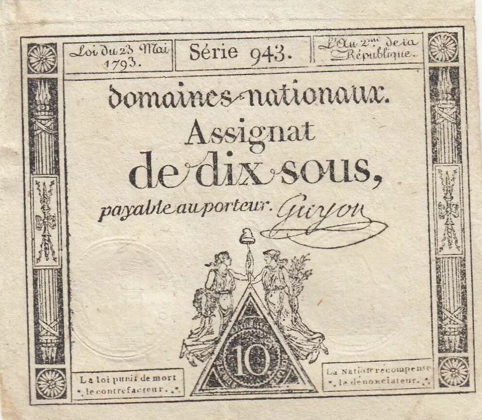 Billet France 10 Sous - Femmes - bonnet frigien - 23-05-1793 - Sign. Guyon - Série 943