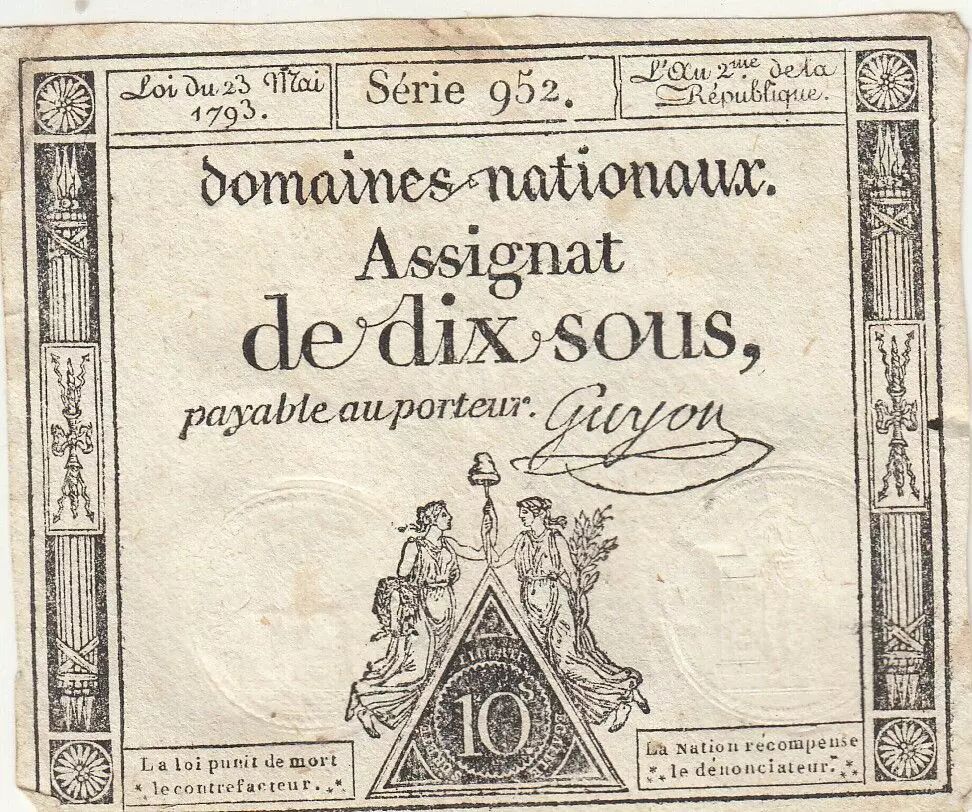 Billet France 10 Sous - Femmes - bonnet frigien - 23-05-1793 - Sign. Guyon - Série 952