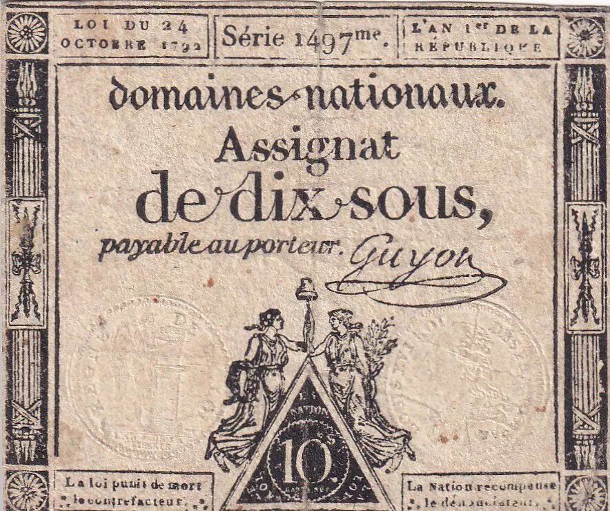Billet France 10 Sous - Femmes, bonnet frigien (24-10-1792) - Sign. Guyon - Série 1497 - L.159