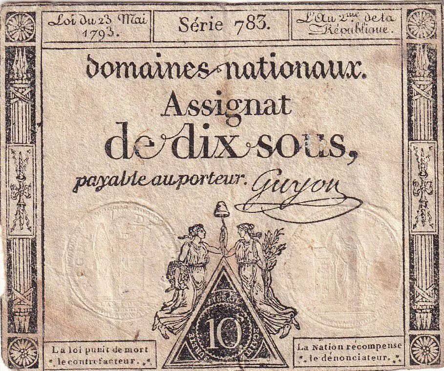 Billet France 10 Sous - Femmes, bonnet frigien (24-10-1792) - Sign. Guyon - Séries variées - L.159