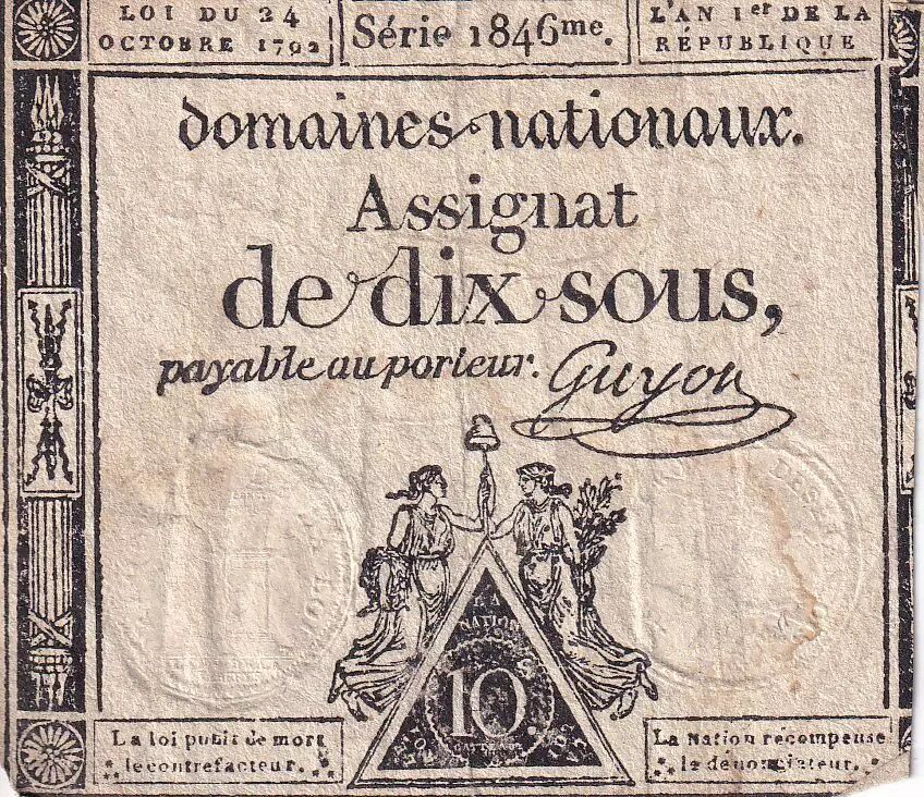 Billet France 10 Sous - Femmes, bonnet frigien (24-10-1792) - TB - Sign. Guyon
