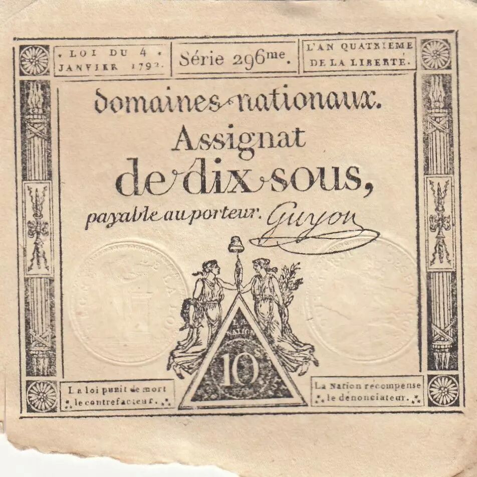 Billet France 10 Sous - Femmes - bonnet phygien - 04-01-1792 - Sign. Guyon - Série 1841