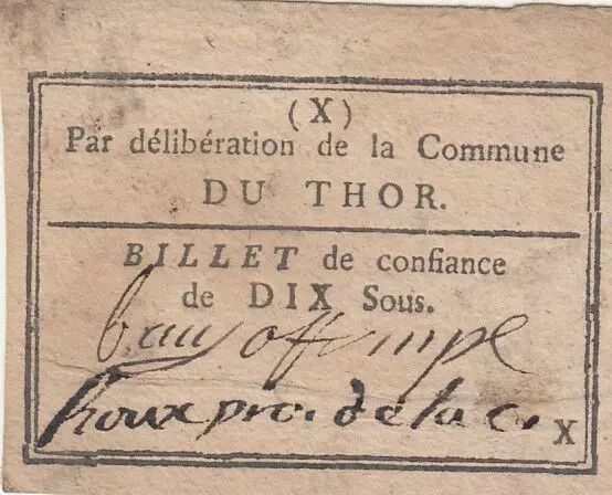 Banknote France 10 sous - Vaucluse - Le Thor - 1792