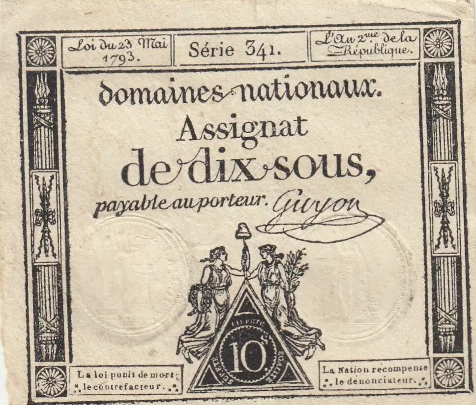 Banknote France 10 Sous - Women - phygian cap - 23-05-1793 - Sign. Guyon - Série 341