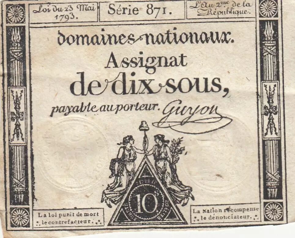 Banknote France 10 Sous - Women - phygian cap - 23-05-1793 - Sign. Guyon - Série 871