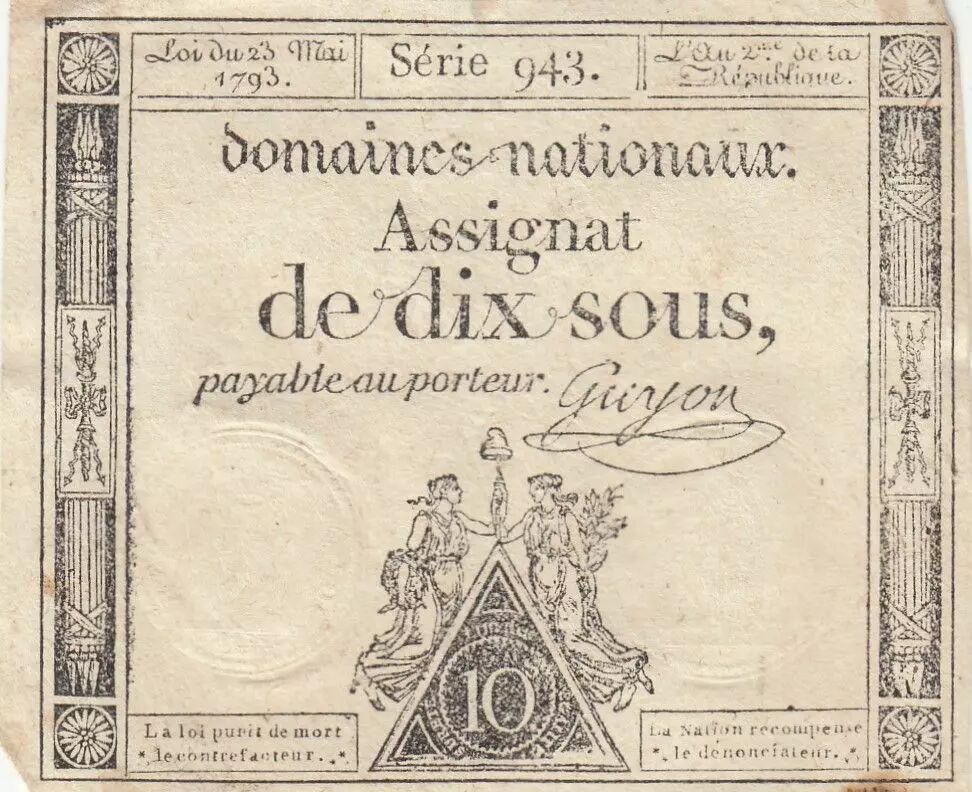 Home > French Banknotes > Assignats > 10 Sols > France 10 Sous - Women with Liberty cap on pole - 23-05-1793 - Sign. Guyon - Série 943