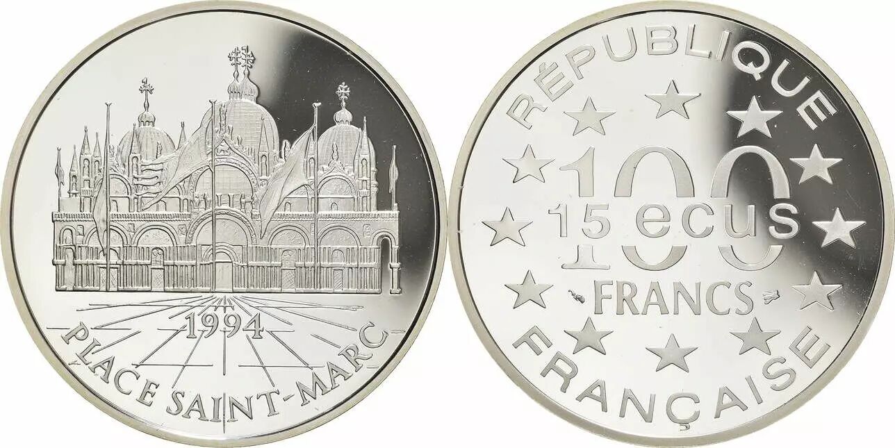 Home > > France 100 Francs 15 Ecus -Place Saint-Marc - 1994 - Silver