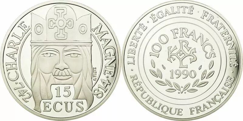 Home > > France 100 Francs - 15 Ecus - Silver Charlemagne - 1990