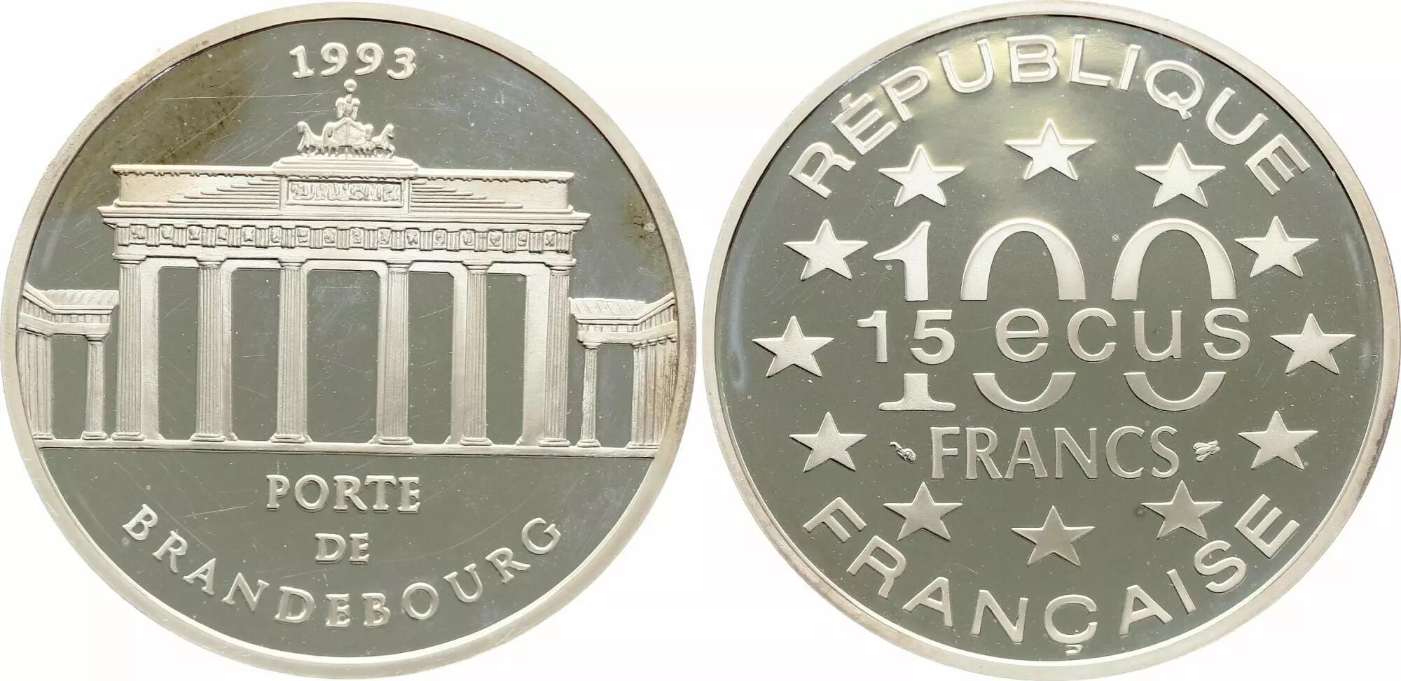 Coin France 100 Francs - 15 Euros - Brandenburg Gate - 1993 - XF - Silver - without certificat