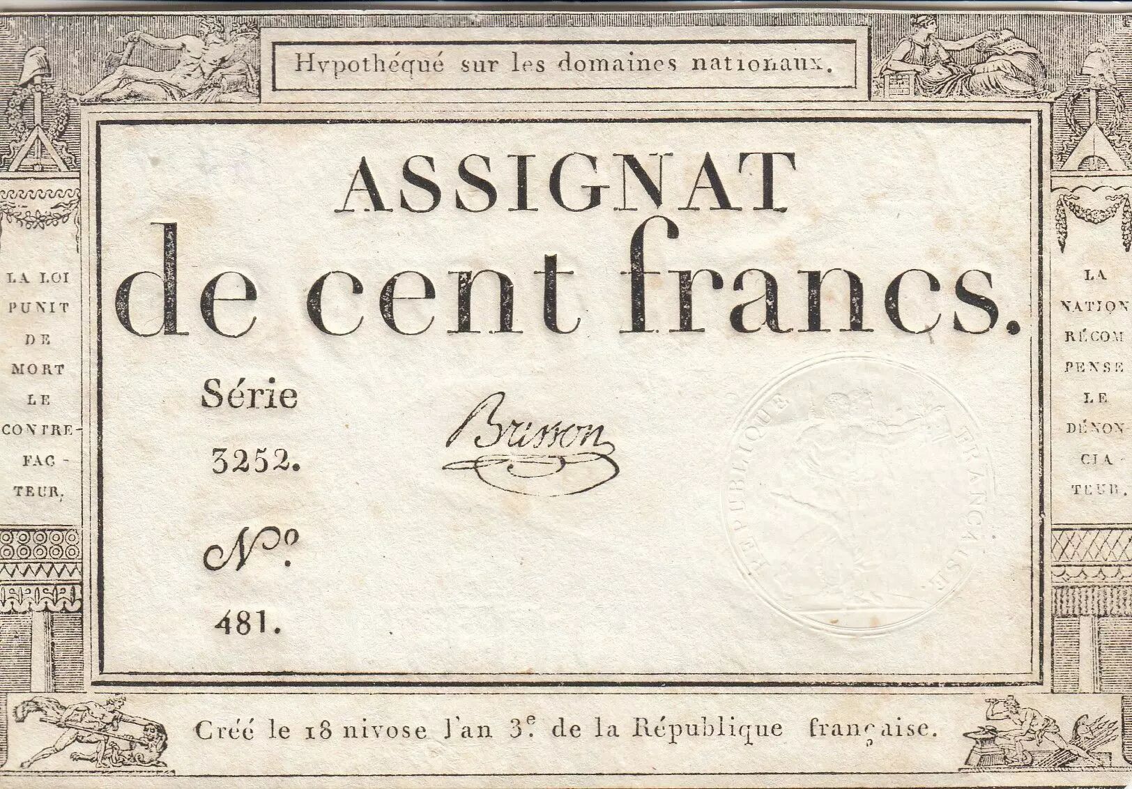 Accueil > Archivage > archivage-Archivage > France 100 Francs- 18 Nivose An III - 07-01 -1795 - Sign. Brisson - Série 3252