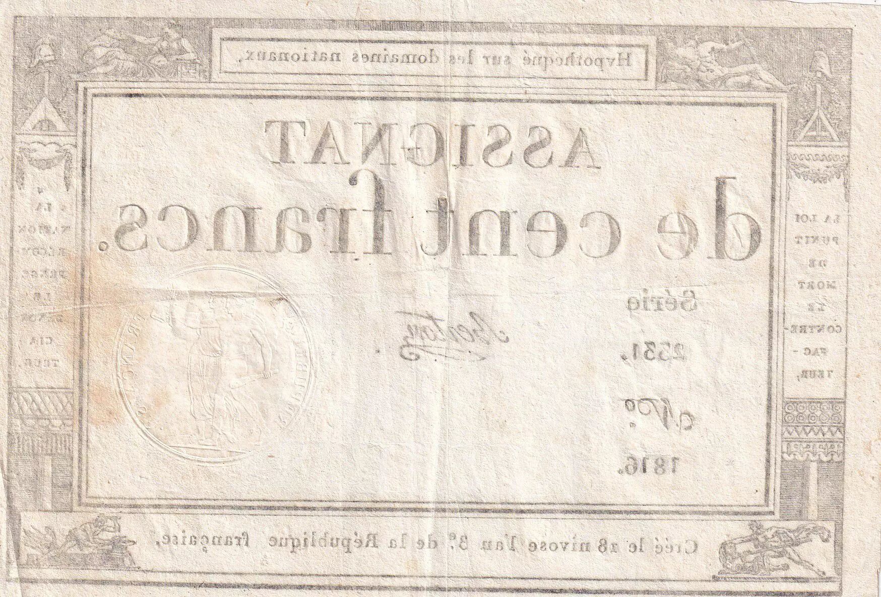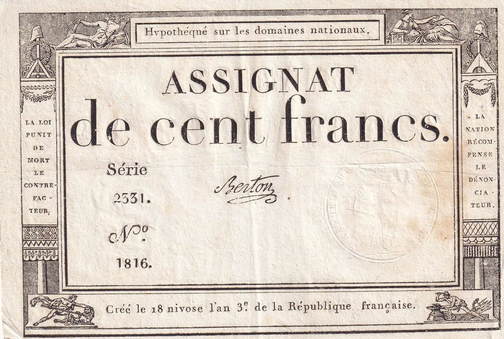 Banknote France 100 Francs - 18 Nivose An III - (07.01.1795) - Sign. Berton - P.78