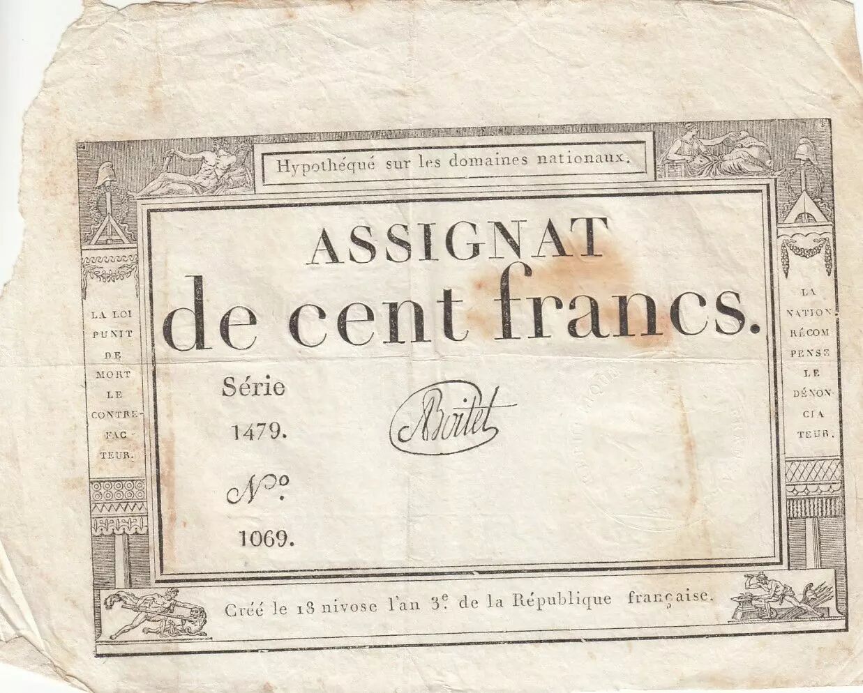 Billet France 100 Francs - 18 Nivose An III - (07.01.1795) - Sign. Boitet - Série 1479