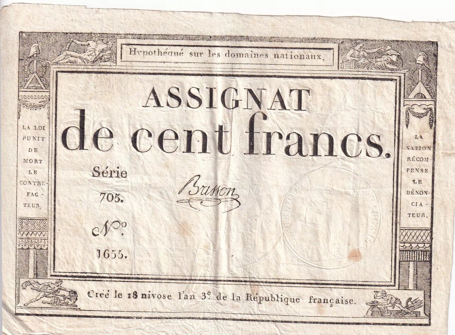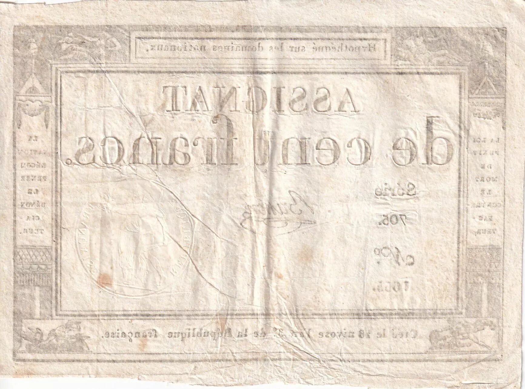 Accueil > Archivage > France 100 Francs - 18 Nivose An III - (07.01.1795) - Sign. Brisson - L.173