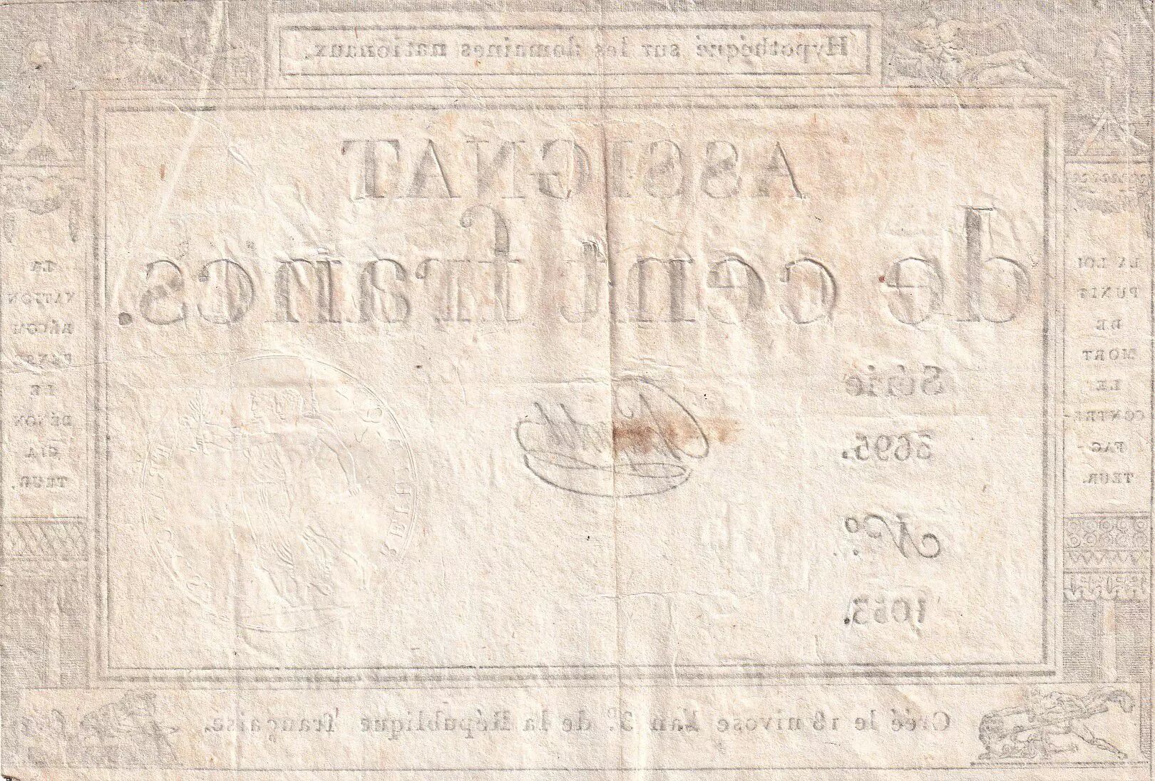 Accueil > Archivage > France 100 Francs - 18 Nivose An III - (07.01.1795) - Sign. Chapotot - L.173