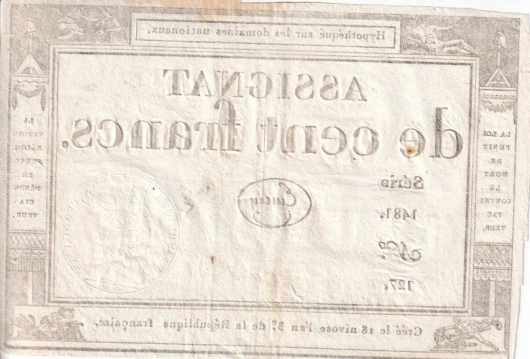 Accueil > Archivage > France 100 Francs - 18 Nivose An III - (07.01.1795) - Sign. Emery- Série 1481