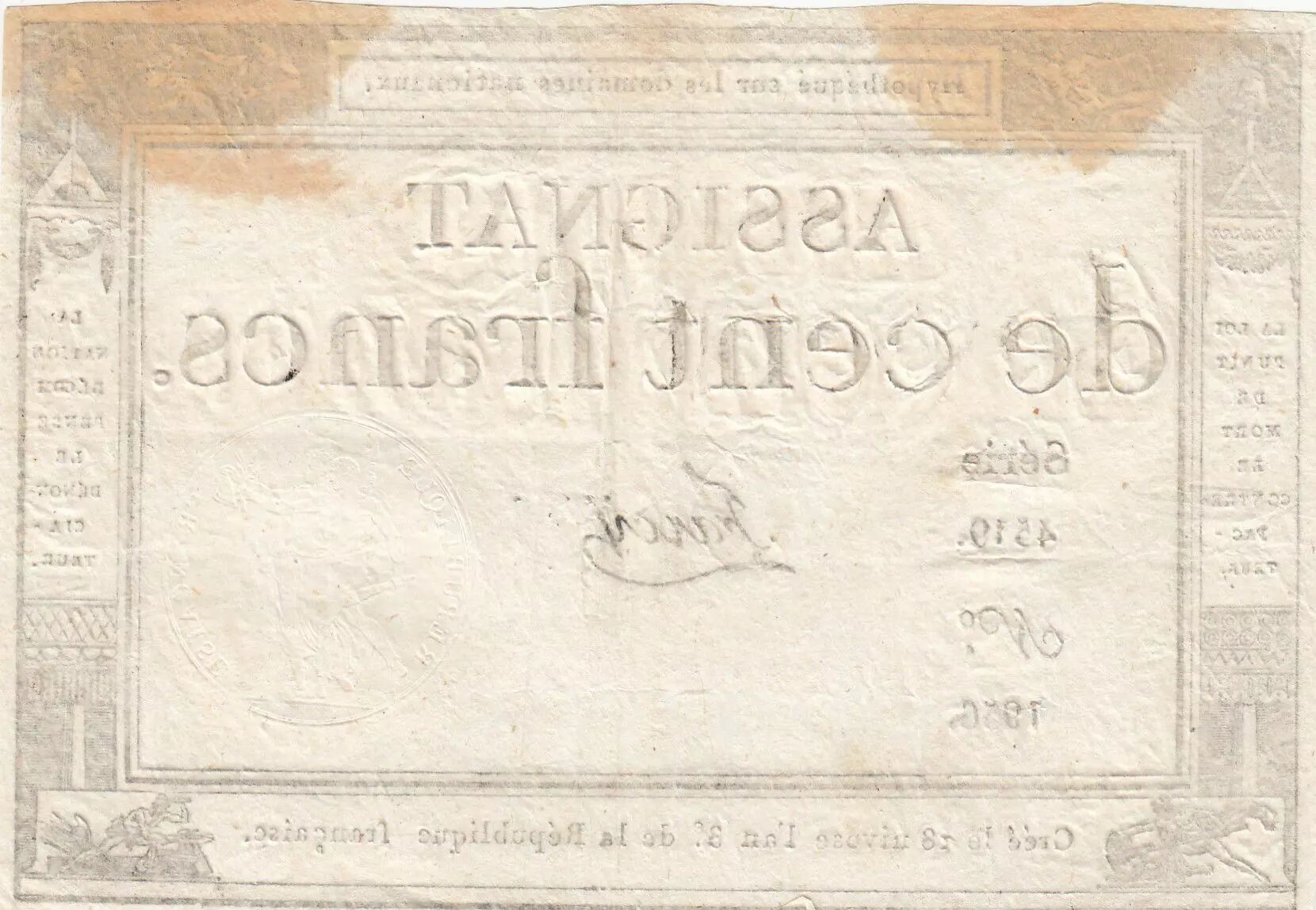 Home > > France 100 Francs - 18 Nivose An III - (07.01.1795) - Sign. Farcy - P.A.78 - Serial 4519