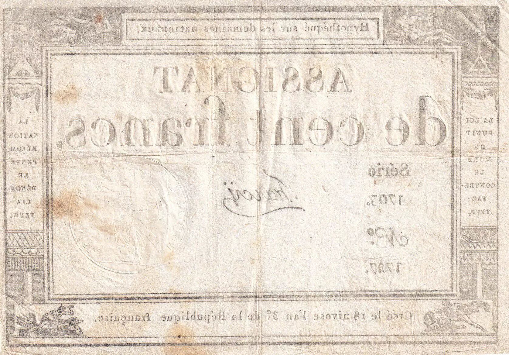 Billet France 100 Francs - 18 Nivose An III - (07.01.1795) - Sign. Farcy - Série 1703 - L.173