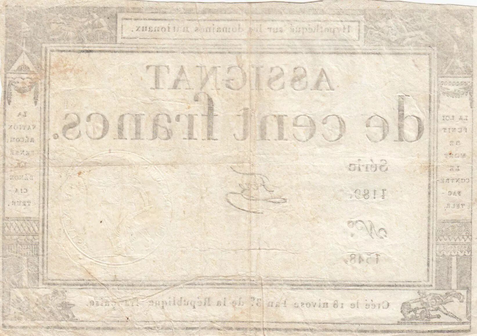 Accueil > Archivage > France 100 Francs - 18 Nivose An III - (07.01.1795) - Sign. Feze - L.173 - Série 1189