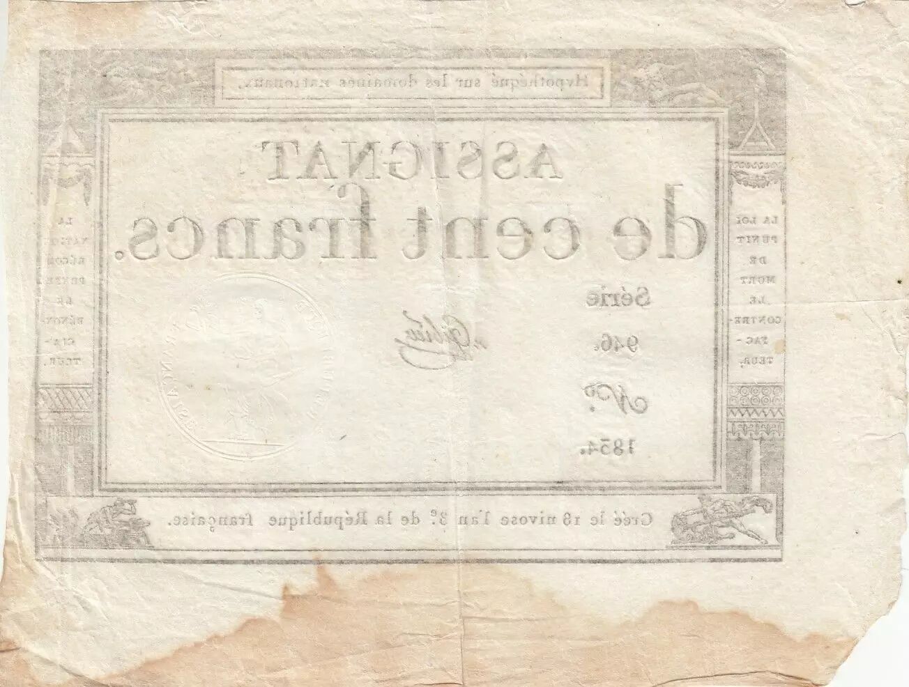Home > French Banknotes > Assignats > 100 Francs > France 100 Francs - 18 Nivose An III - (07.01.1795) - Sign. Gibier - Serial 946
