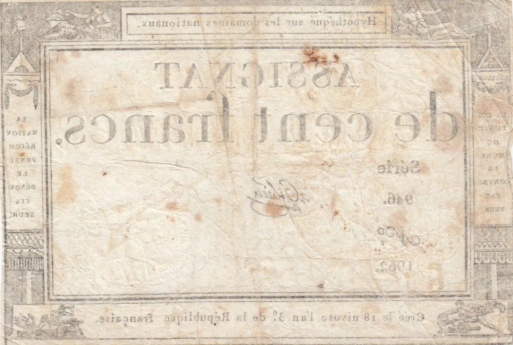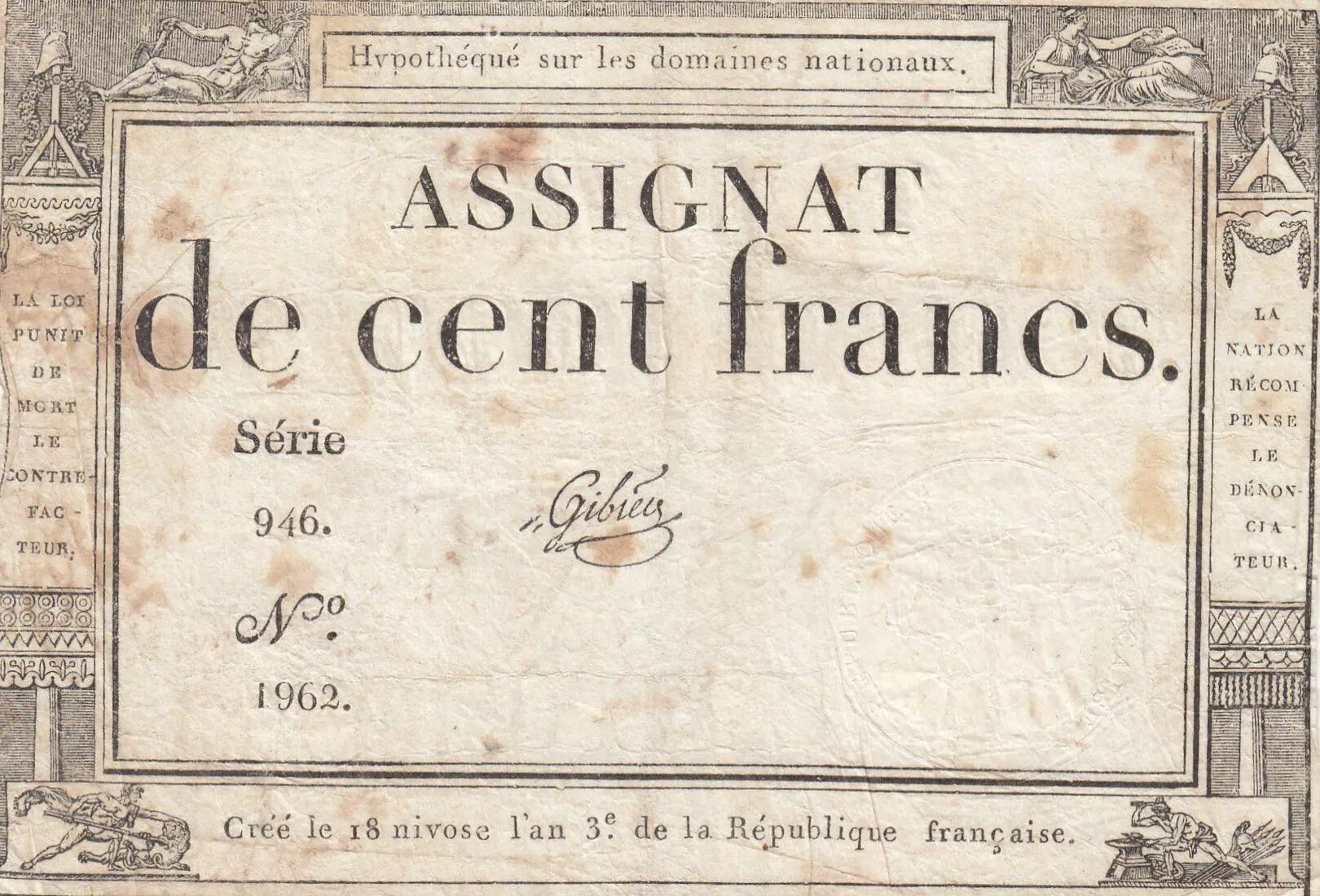 Billet France 100 Francs - 18 Nivose An III - (07.01.1795) - Sign. Gibier - Série 946