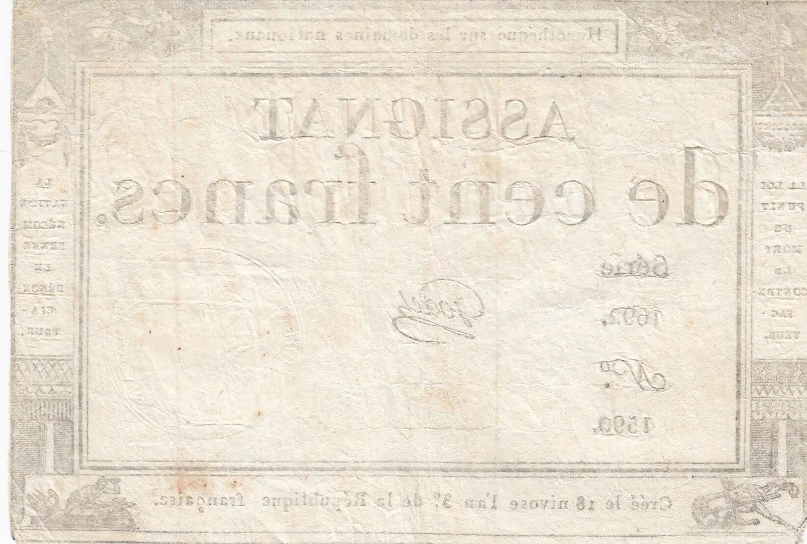 Billet France 100 Francs - 18 Nivose An III - (07.01.1795) - Sign. Godet - L.173 - Série 1692