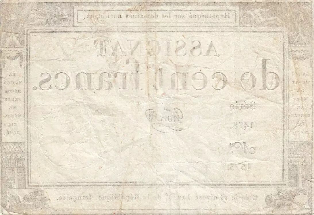 Billet France 100 Francs - 18 Nivose An III - (07.01.1795) - Sign. Gros - Série 1478