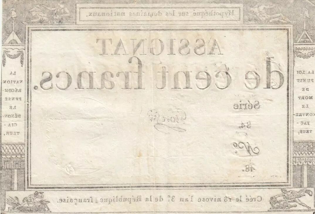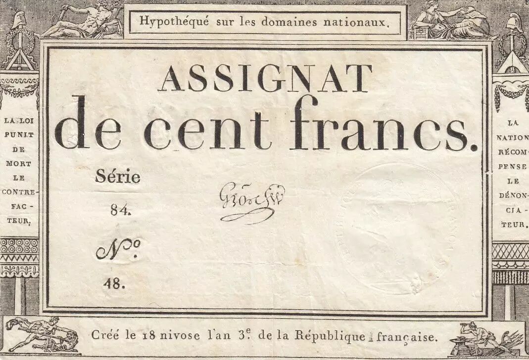 Billet France 100 Francs - 18 Nivose An III - (07.01.1795) - Sign. Gros - Série 84