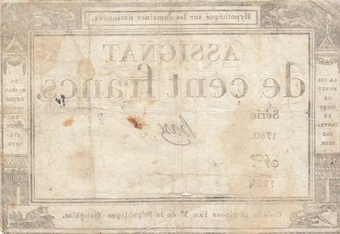 Home > French Banknotes > Assignats > 100 Francs > France 100 Francs - 18 Nivose An III - (07.01.1795) - Sign. Haze - Serial 1780