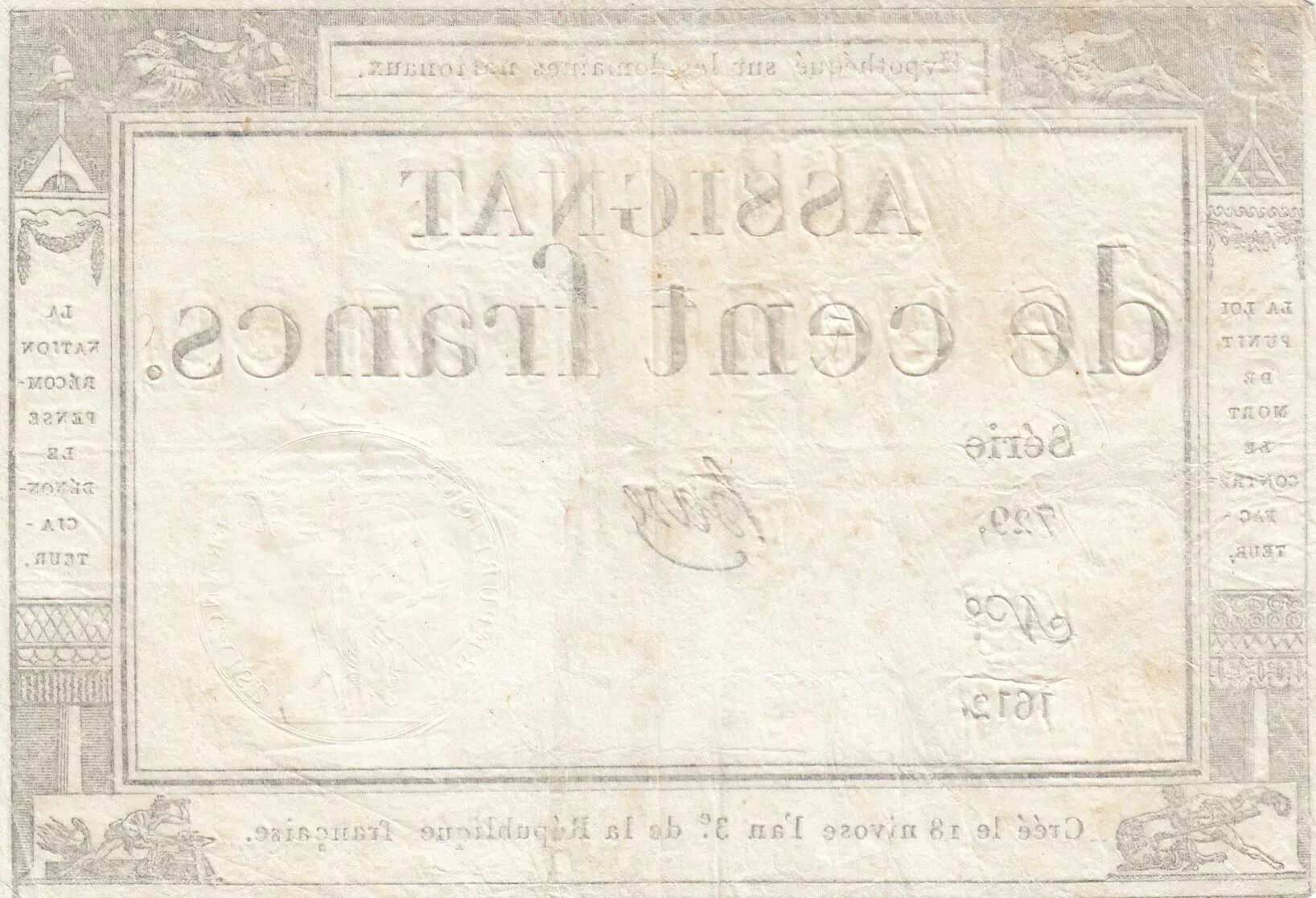 Banknote France 100 Francs - 18 Nivose An III - (07.01.1795) - Sign. Haze - Serial 729