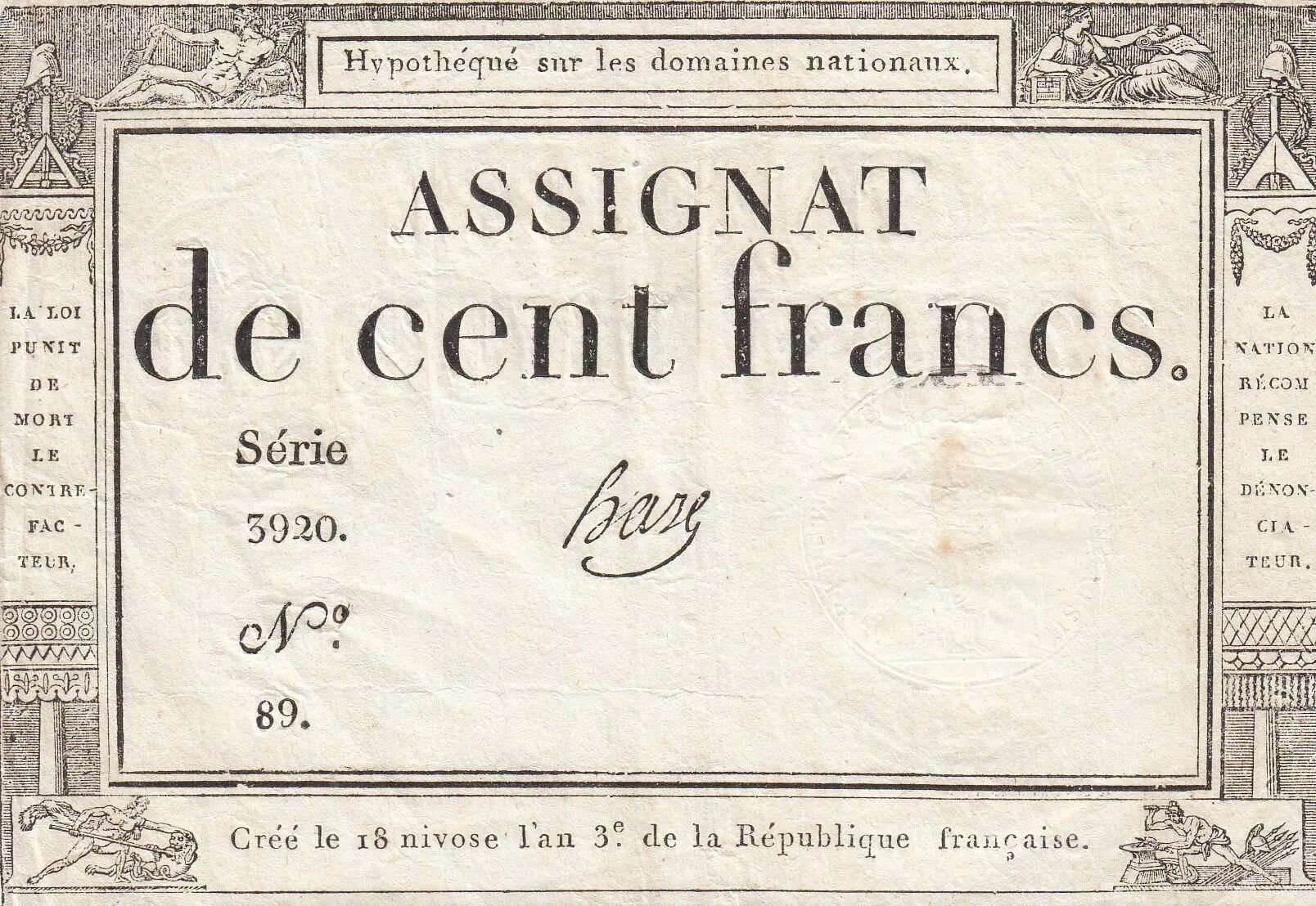 Accueil > Archivage > France 100 Francs - 18 Nivose An III - (07.01.1795) - Sign. Haze- Série 3920