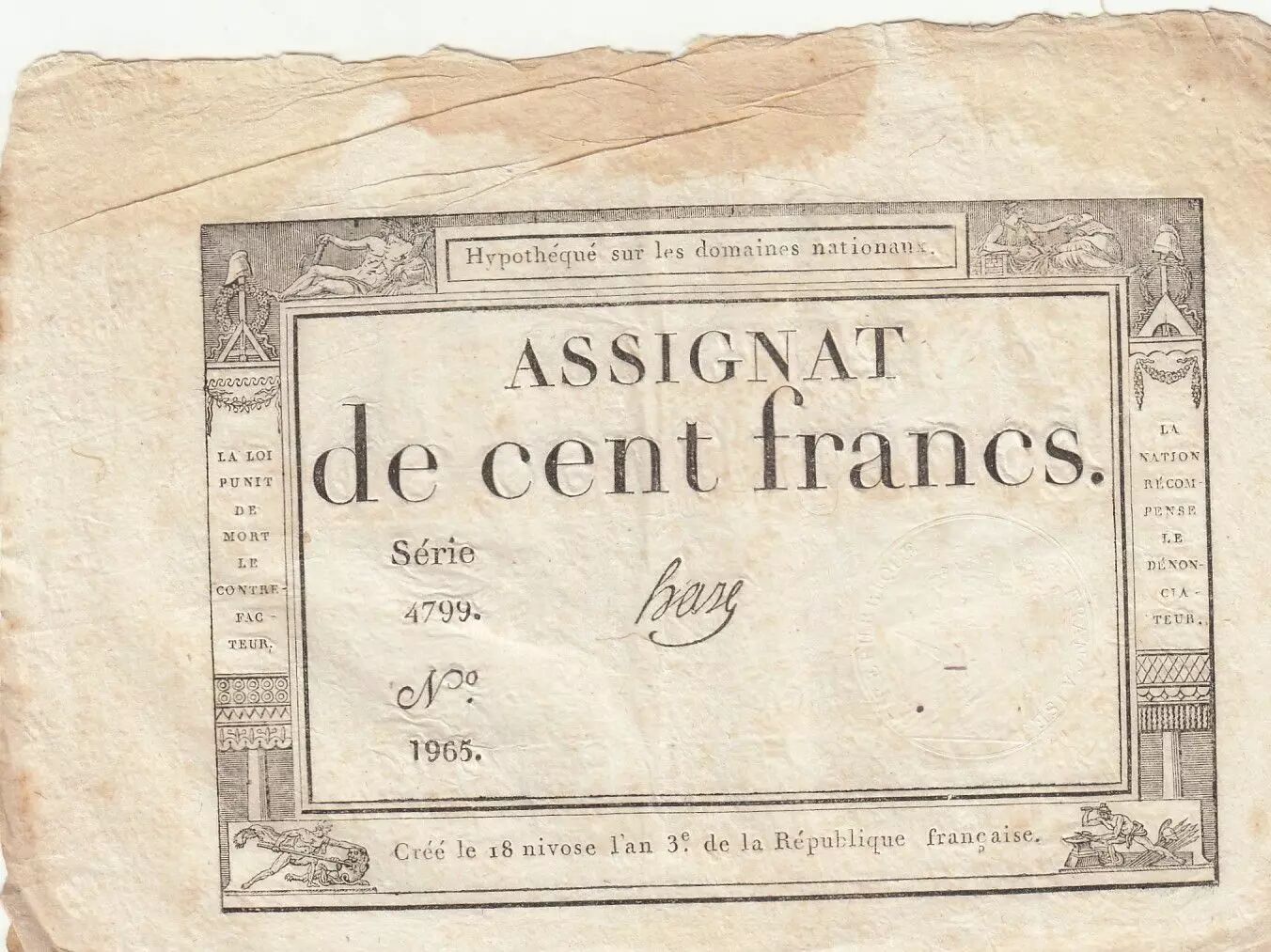 Billet France 100 Francs - 18 Nivose An III - (07.01.1795) - Sign. Haze - Série 4799