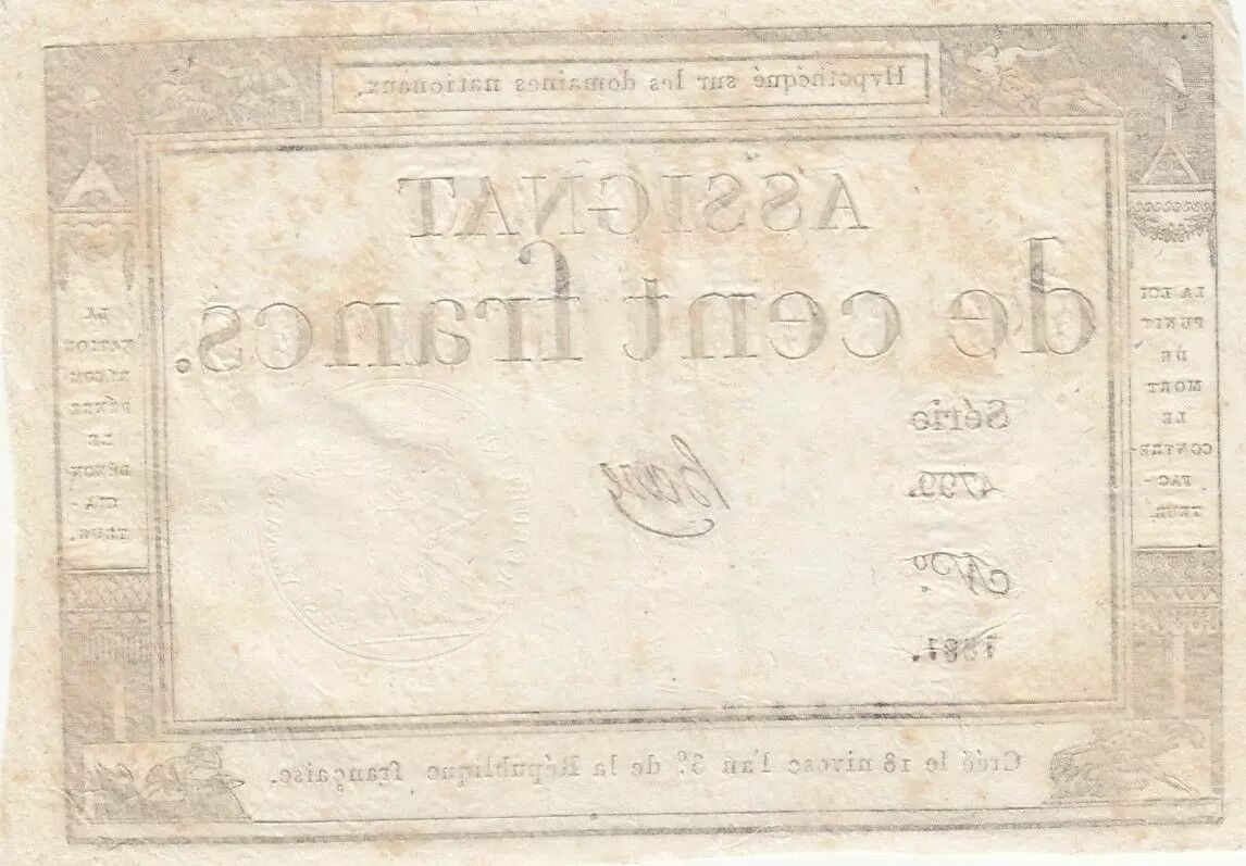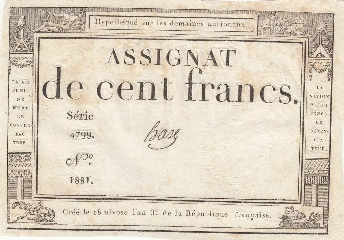 Billet France 100 Francs - 18 Nivose An III - (07.01.1795) - Sign. Haze - Série 4799