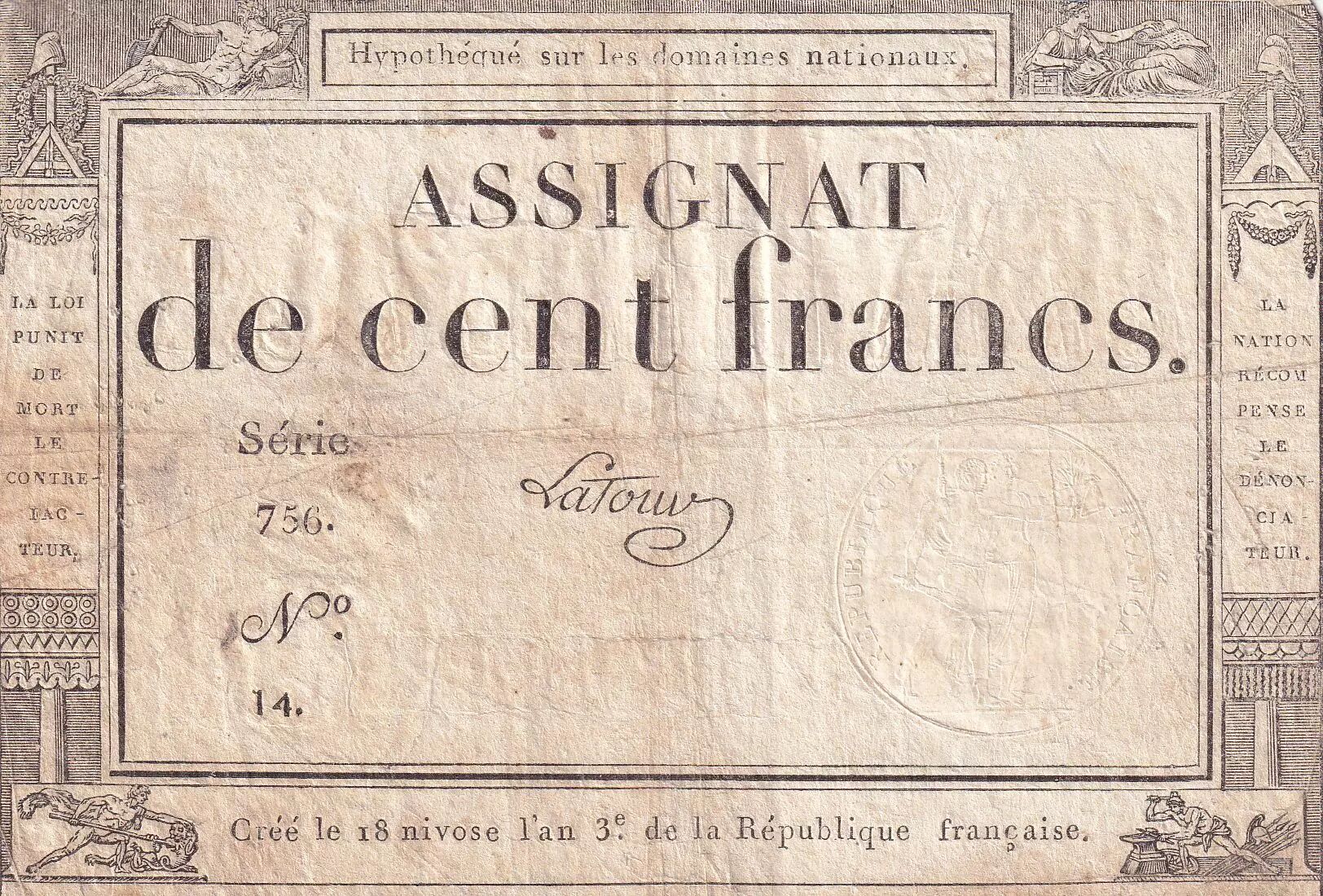 Home > > France 100 Francs - 18 Nivose An III - (07.01.1795) - Sign. Latour - Serial 756 - P.78