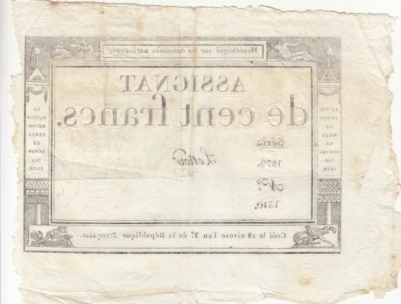Banknote France 100 Francs - 18 Nivose An III - (07.01.1795) - Sign. Lenoir - Serial 1879