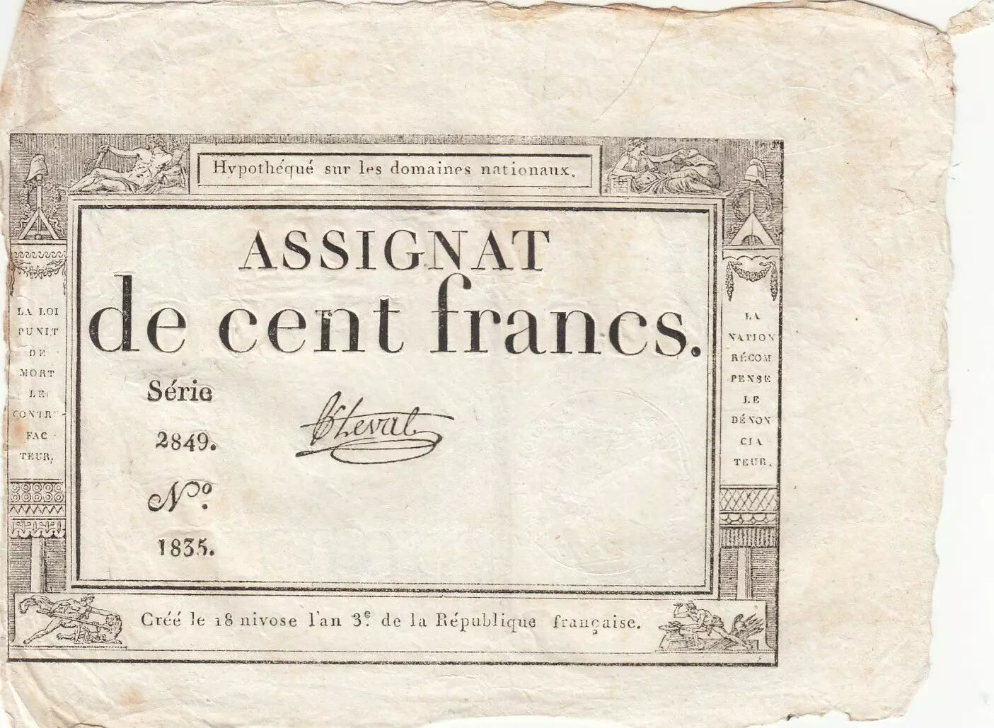 Billet France 100 Francs - 18 Nivose An III - (07.01.1795) - Sign. Leval - Série 2849