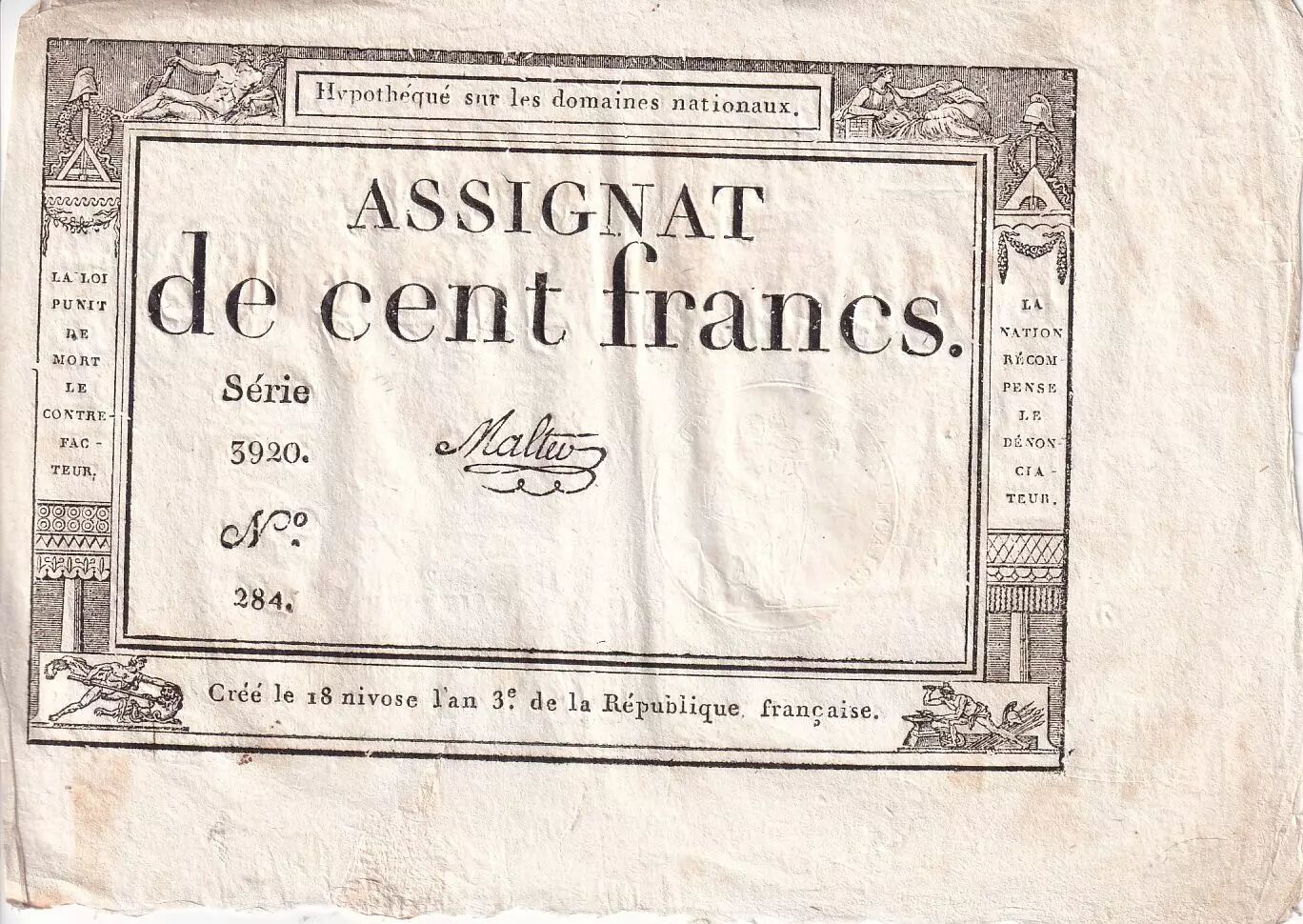 Billet France 100 Francs - 18 Nivose An III - (07.01.1795) - Sign. Malter - Série 3920