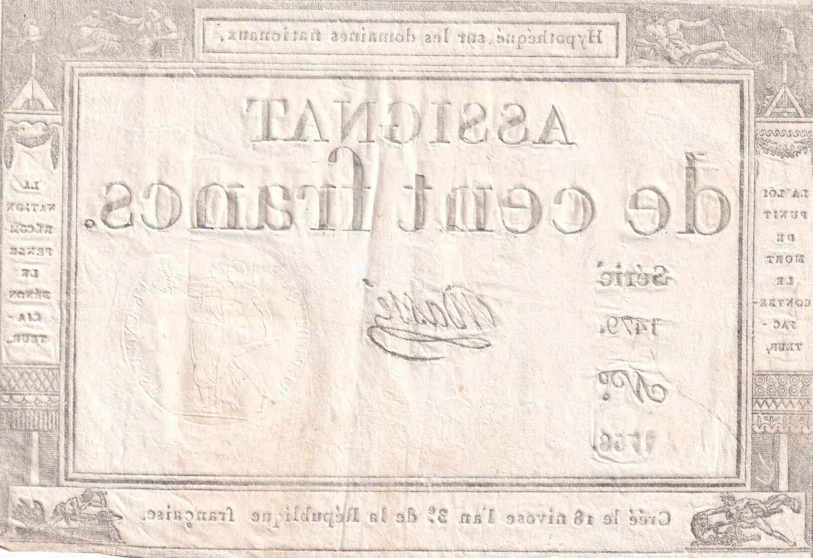 Banknote France 100 Francs - 18 Nivose An III - (07.01.1795) - Sign. Massé - Serial 1479 - P.78
