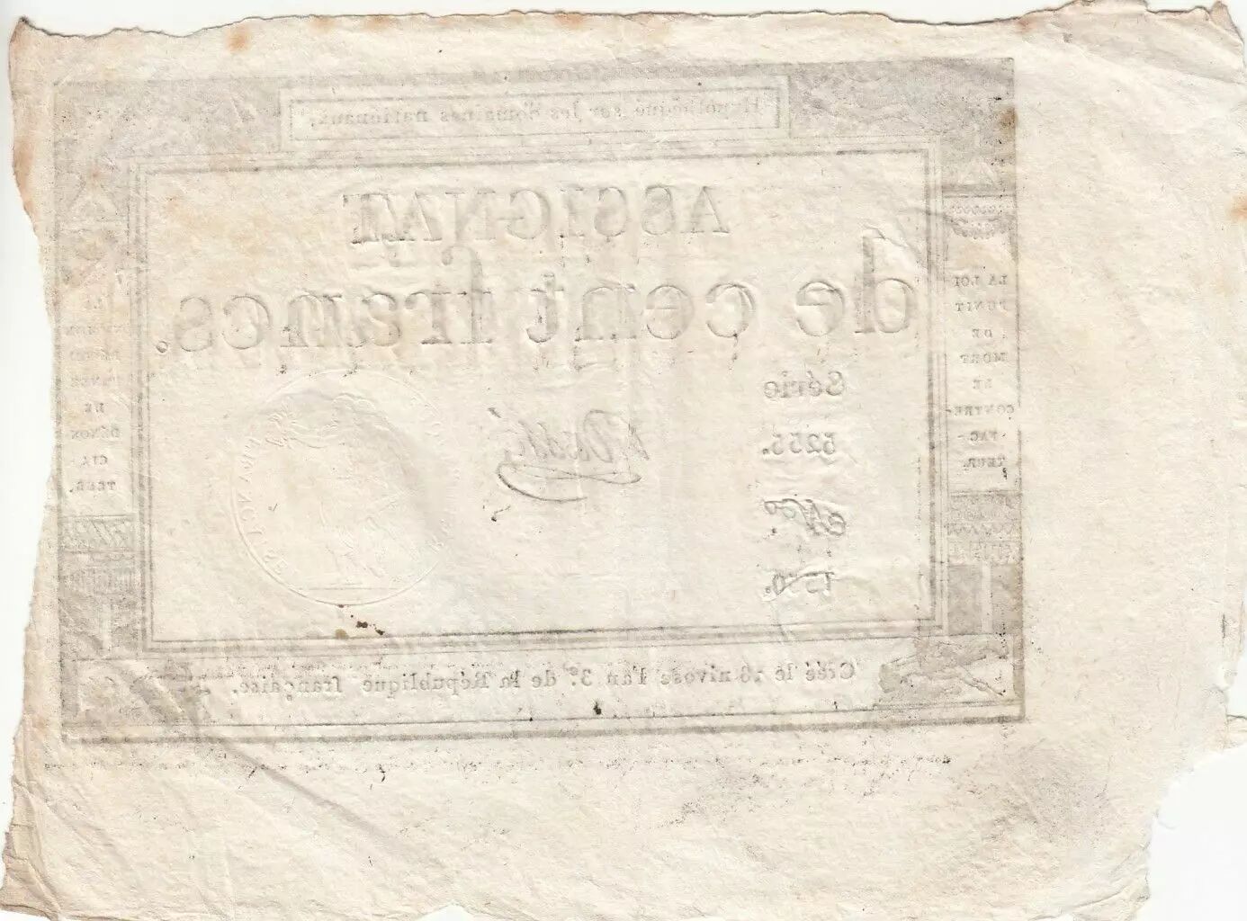 Banknote France 100 Francs - 18 Nivose An III - (07.01.1795) - Sign. Massé - Serial 3316