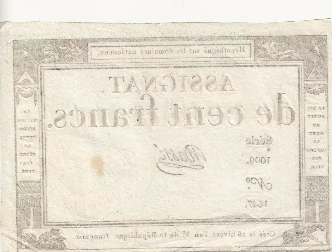 Billet France 100 Francs - 18 Nivose An III - (07.01.1795) - Sign. Massé - Série 1009