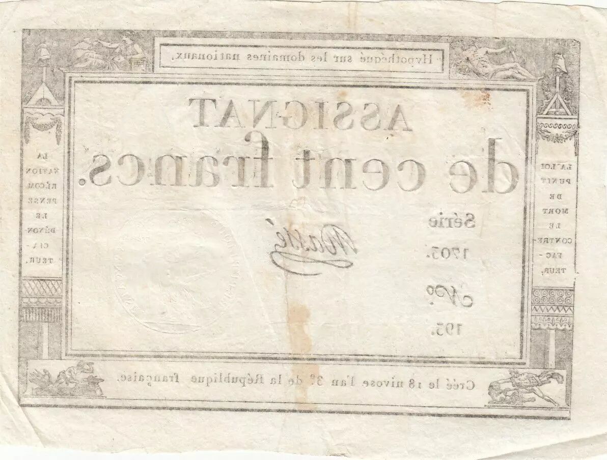 Accueil > Billets Français > Assignats > 100 Francs > France 100 Francs - 18 Nivose An III - (07.01.1795) - Sign. Massé - Série 1703