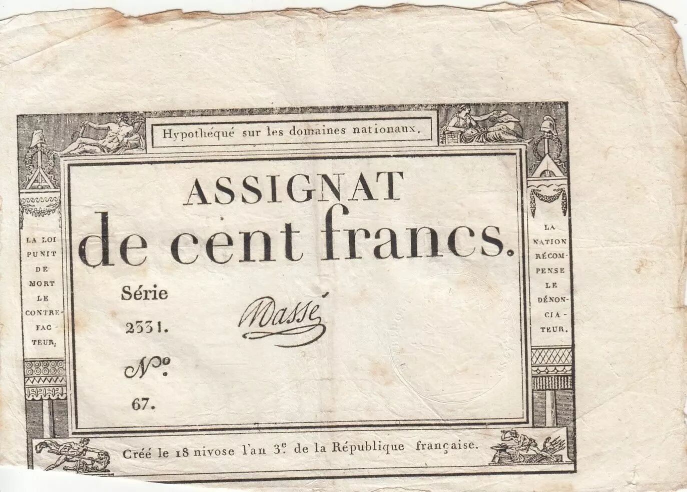 Billet France 100 Francs - 18 Nivose An III - (07.01.1795) - Sign. Massé - Serie 2331