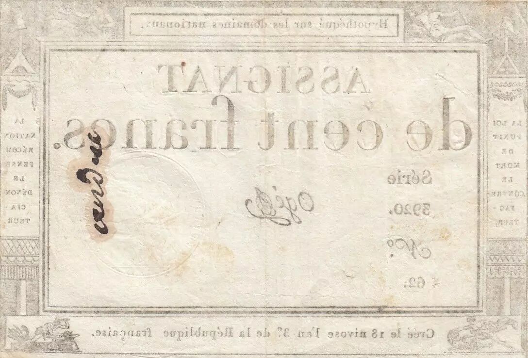Home > > France 100 Francs - 18 Nivose An III - (07.01.1795) - Sign. Ogé - Serial 3920