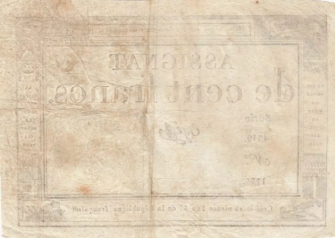 Banknote France 100 Francs - 18 Nivose An III - (07.01.1795) - Sign. Ogé - Serial 4519