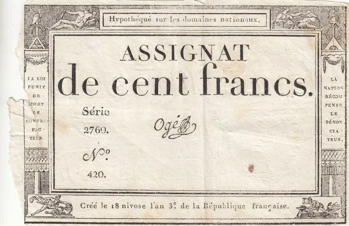 Billet France 100 Francs - 18 Nivose An III - (07.01.1795) - Sign. Ogé - Série 2760