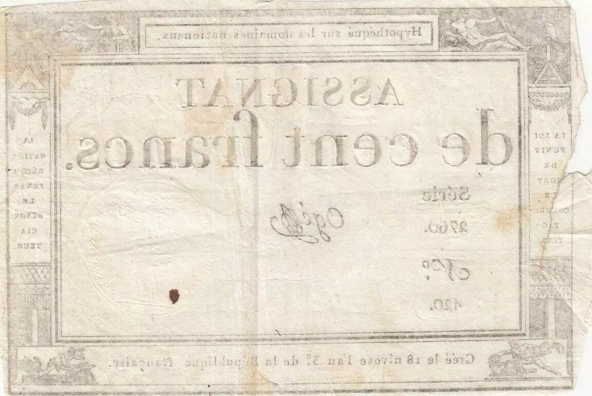 Accueil > Billets Français > Assignats > 100 Francs > France 100 Francs - 18 Nivose An III - (07.01.1795) - Sign. Ogé - Série 2760