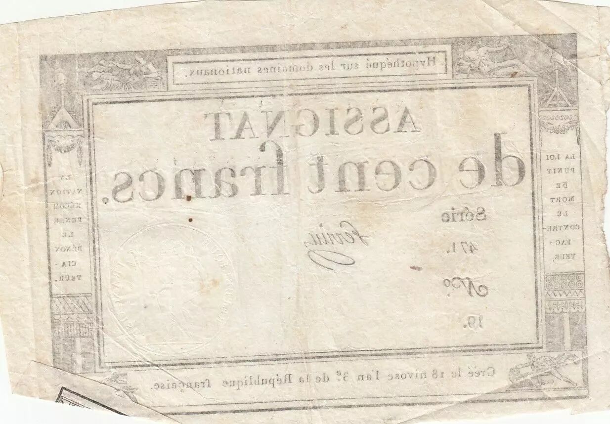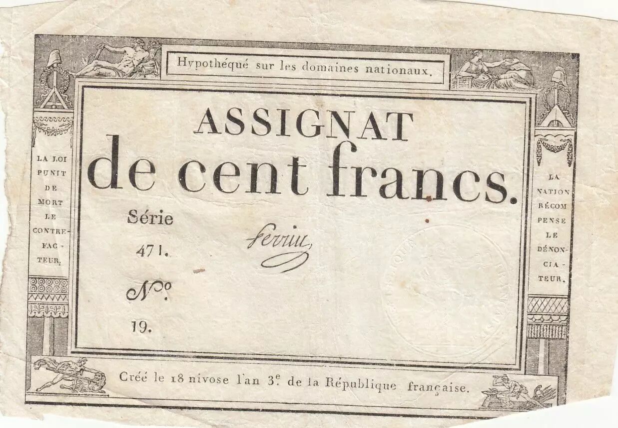 Banknote France 100 Francs - 18 Nivose An III - (07.01.1795) - Sign. Perrin - Serial 471