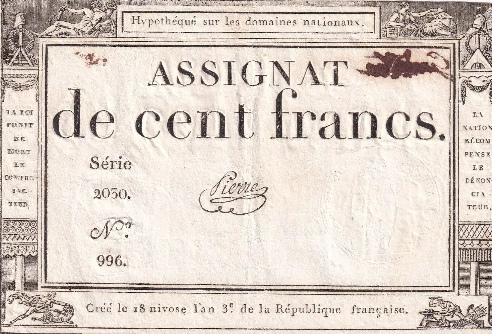 Plis, salissures, trace d'encre, tâches, billet très fragile, déchirure et un manque