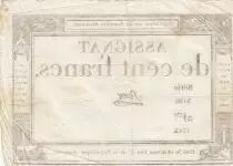 Home > French Banknotes > Assignats > 100 Francs > France 100 Francs - 18 Nivose An III - (07.01.1795) - Sign. Saxy - Serial 3420